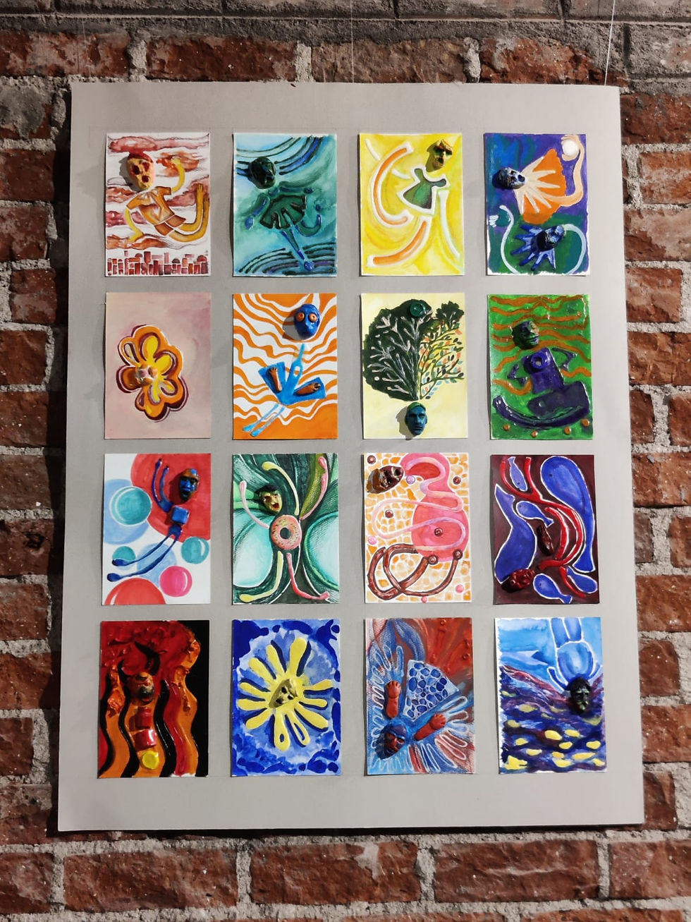 At space studio, I had an opportunity to play with lots of materials, mediums, and colours. I would make clay faces from paper mache. Then stick it on a paper, along with other things. The next day, I would use fevicol, and emboss some parts. Then on the next day I would paint on it using acrylic paints. Sometimes, I'd highlight some parts using pencil colours. The whole process with sequential, and it mirrored my emotions lot of times.